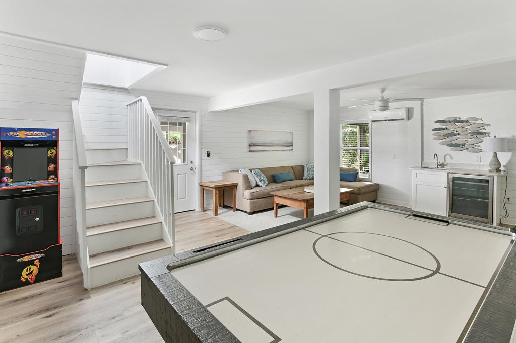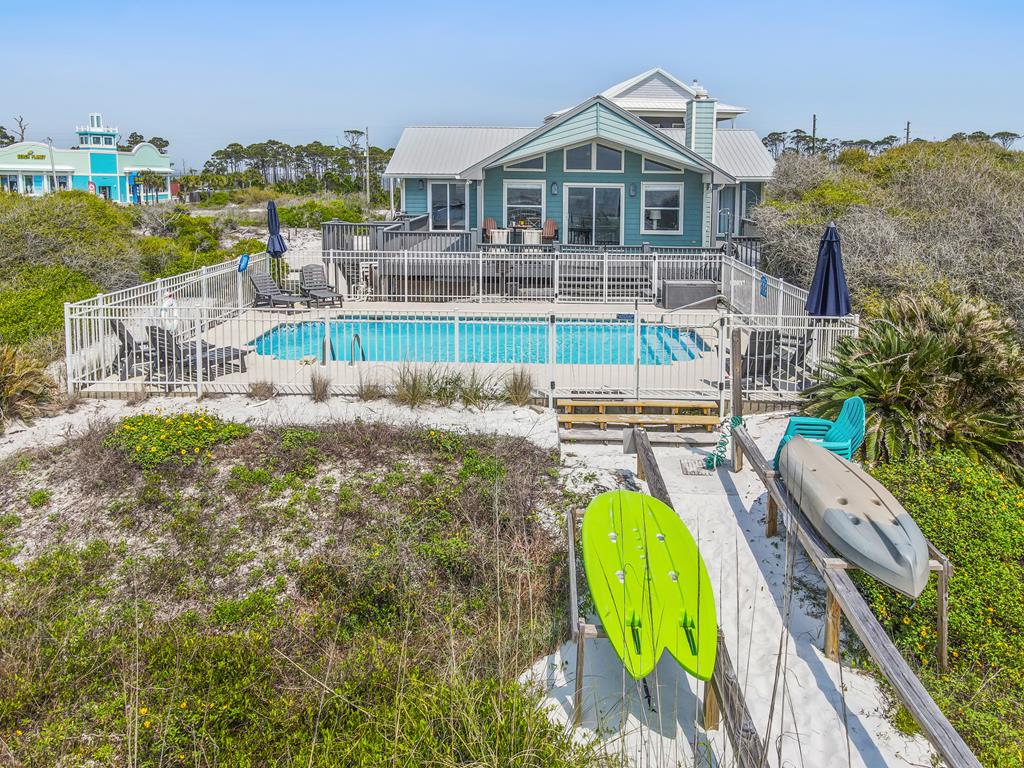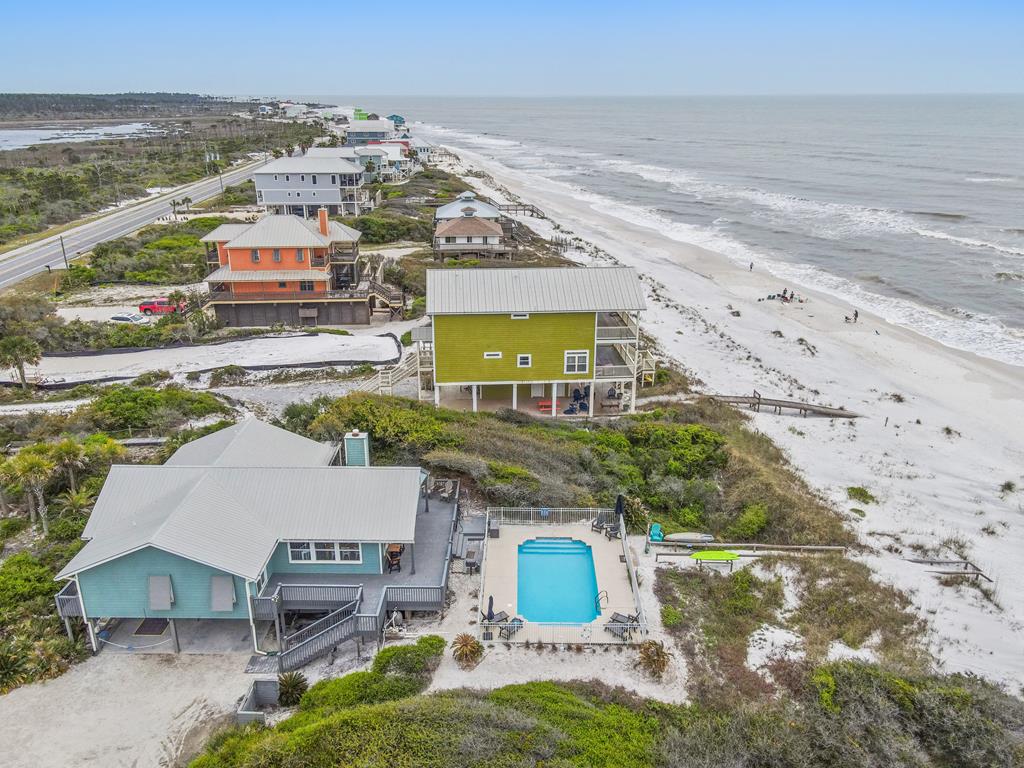 GREAT INVESTMENT PROPERTY with GRI 2024 being $196,733, 2025-$200,866 ($18,800 of this had to be canceled due to improvements to gulf front salt pool and surround, which is happening now!), and 2026 already has $156,591 on the books as of 11/8. This very well maintained home has a huge open vaulted living area with many gulf front windows and electric fireplace. The dining and kitchen area is open to the beautiful living area, allowing the chef a gulf view, while preparing meals. The master bedroom, in this split floorplan, has two sinks, a sliding glass door which opens onto the trek deck with stunning gulf views. The other 3 bedrooms are ensuites, with sliders onto a deck, all located on the other side of the living area. One ensuite opens out onto the deck for easy access to the pool and beach. Finally, it has a spiral staircase going downstairs to access an additional playroom or hangout, with a wet bar, and games as shown in pictures. This opens out onto the covered parking and shuffleboard court. This one should not last long!!!! Come see for yourself!!!!!